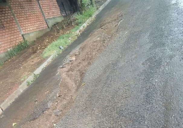 Ainda não completou um mês do conserto da pista da rua Graça Aranha, Jardim Alvorada, e o problema retorna.