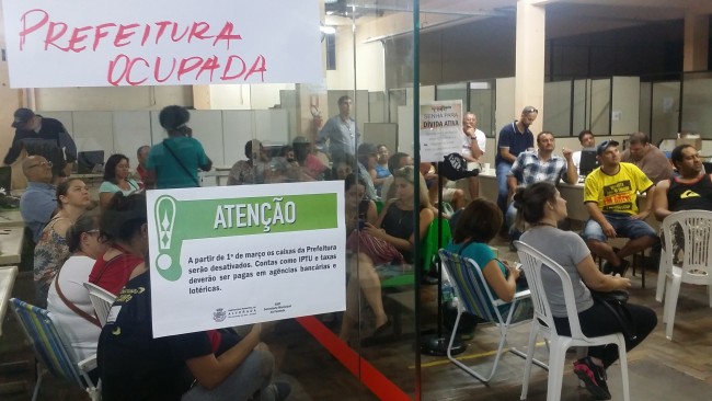 Após um dia de paralisação geral, em que grande parte dos servidores esteve de braços cruzados e ocupou as dependências da Prefeitura, um grupo de 50 funcionários municipais resolveu permanecer no prédio durante a noite.