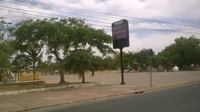 Termômetro na parada 48 registra 42°C na tarde desta segunda-feira (25) | Foto: Mariú Delanhese / OA