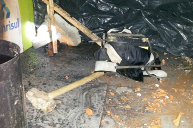 Ao deslocar-se para o local, os policiais encontraram o veículo e fizeram a abordagem. Com os criminosos foi encontrado as ferramentas utilizadas para fazer o arrombamento, que estavam no porta malas.