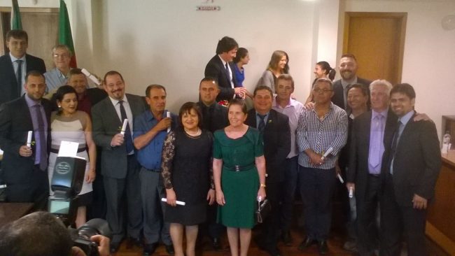 Compareceram os 17 eleitos e, confirmando a liminar emitida na quinta-feira (15), não receberam seus diplomas o prefeito eleito Arno Appolo do Amaral e seu vice Valter Slayfer.